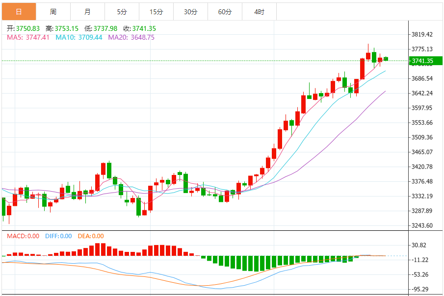现货黄金周四上涨0.36%,至每盎司3749.36美元,在会议期间黄金价格上涨0.6%。在周二的会议期间,黄金价格达到了每盎司3,790.82美元的创纪录 。