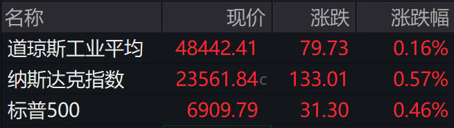 大型科技股整体走强,英伟达上涨3.01% ,为标普500指数提供最大支撑;博通上涨2.30%,亚马逊上涨1.62%,谷歌A股上涨1.48% ,谷歌C股上涨1.40%,苹果上涨0.51%,微软上涨0.40% ,Meta上涨0.52%。特斯拉则小幅下跌0.65%,超威半导体基本持平 。